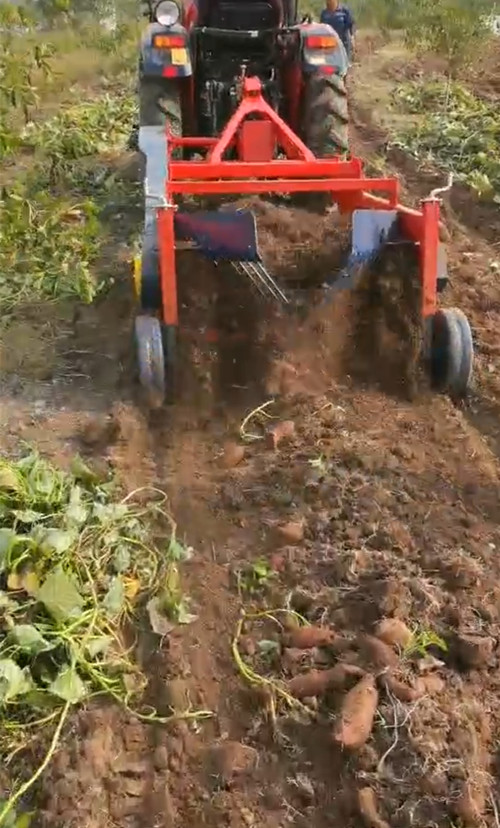 紅薯為地下產(chǎn)物,塊莖繁殖,人工收獲費時費力、勞動強(qiáng)度大且季節(jié)性強(qiáng)。此款收獲機(jī)可收獲:土豆、大蒜、洋蔥、壟種地瓜等根莖類作物,由傳動機(jī)構(gòu)、地輪、挖掘鏟、輸送鏈、清選篩等部件組成,可一次完成挖掘、篩選等工序,配套四輪拖拉機(jī)或手扶拖拉機(jī),分別為中間輸出傳動和右側(cè)輸出傳動兩種。該機(jī)具具備收獲效率高、破損率低、運轉(zhuǎn)輕快無震動、不堵草、漏土快、結(jié)構(gòu)合理、使用壽命長等特點。是廣大薯類種植戶的理想收獲幫手。