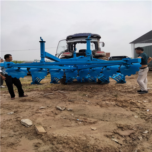 山東菏澤魯富機械大型無墑犁 深耕平墑犁廠家型號直供。大型無墑犁的使用大大提高了深耕地的效率此新款無墑犁,包括深耕犁和旋耕機,旋耕機設(shè)置在深耕犁尾部,深耕犁包括雙橫梁犁架,雙面犁鏵,連接件,單面犁鏵,限深輪,雙橫梁犁架上橫向設(shè)置有橫梁,雙橫梁犁架左右兩側(cè)設(shè)置有限深輪,雙橫梁犁架前端設(shè)置有雙面犁鏵,橫梁上固定有連接件,連接件上固定有單面犁鏵,連接件的安裝板頂部開設(shè)小固定孔,底部開設(shè)大固定孔,單面犁鏵支桿頂部開設(shè)有小固定孔和大固定孔,單面犁鏵通過安裝板和支桿的小固定孔和大固定孔安裝螺栓與連接件固定,通過連接件將單面犁鏵固定在橫梁上,增大了受力面積,單面犁鏵不容易折斷,改變連接件的位置改變單面犁鏵的間距,根據(jù)犁地深度調(diào)節(jié)支桿和安裝板上固定孔的位置,改變單面犁鏵離地面高度。采用無開閉壟雙向犁耕翻技術(shù),省油、高效、無墑溝,省工增產(chǎn),三項效益合計...